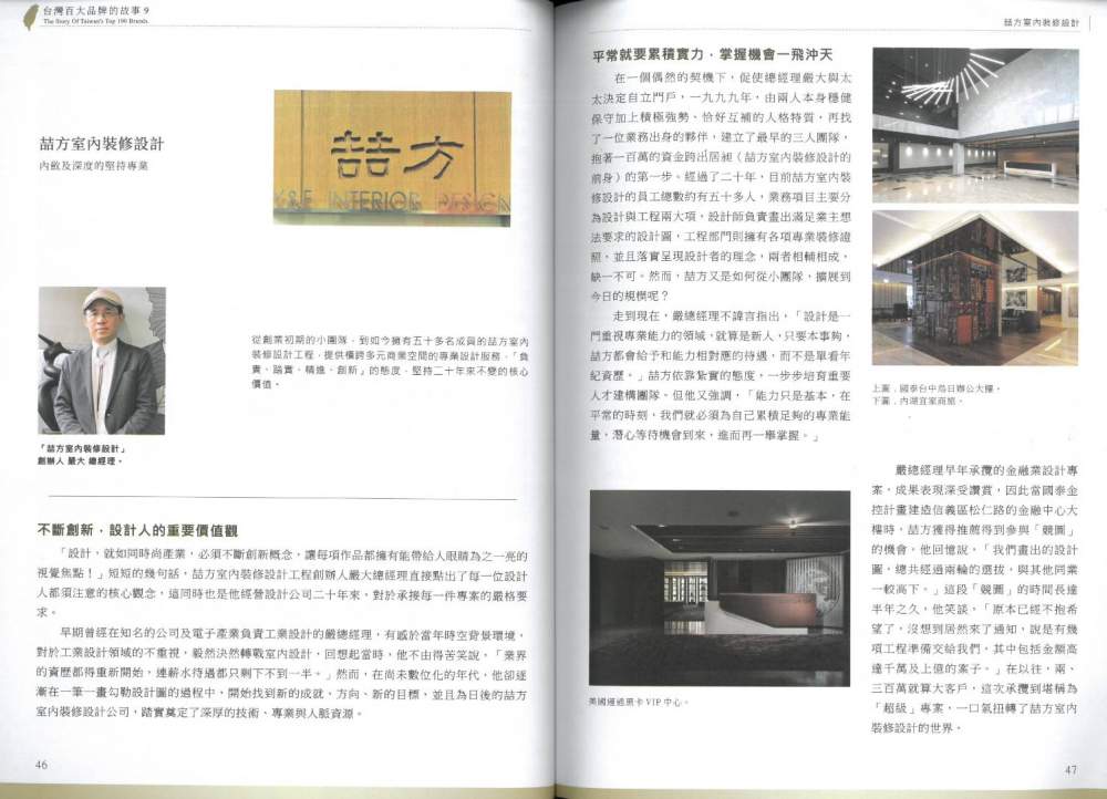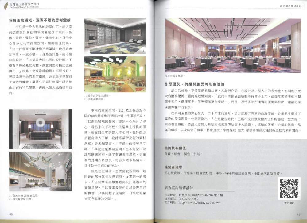 台灣「百大品牌的故事」- 雜誌專訪 | Y&F 喆方設計 | 全方位室內設計服務