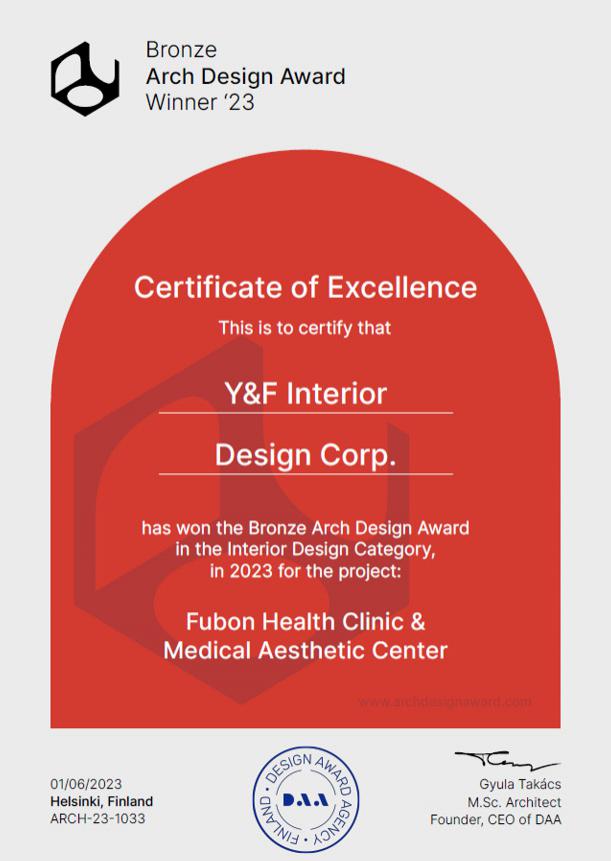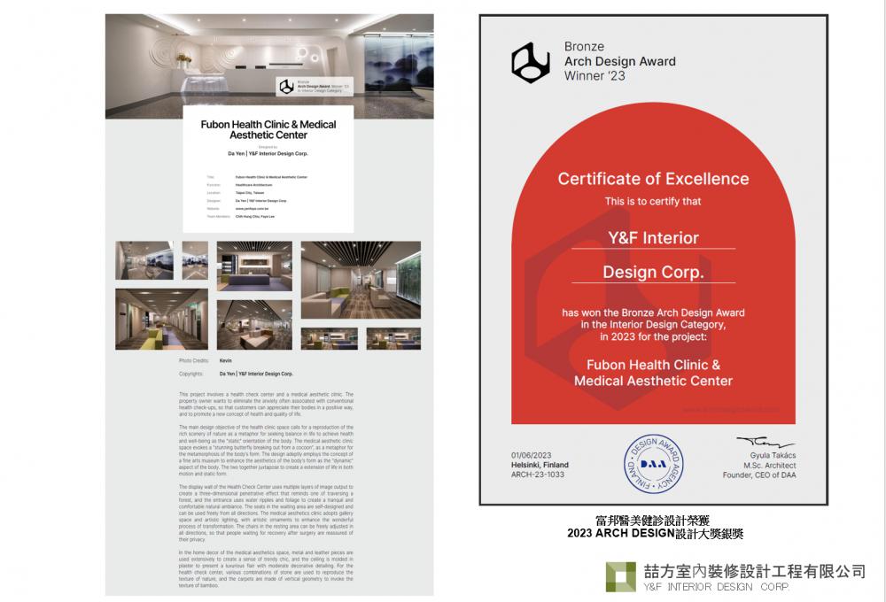富邦醫美健診設計榮獲2023 ARCH DESIGN設計大獎銀獎 2026-01-06 20:53 富邦醫美健診設計榮獲2023 ARCH DESIGN設計大獎銀獎 | Y&F 喆方設計 | 全方位室內設計服務 Y&F INTERIOR DESIGN NEWS